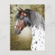 Jayne Wilsons ursprungliga digitala konstverk har ett huvud porträtt i en Indisk Pony från Appaloosa i ett rött headstall, med gyllene accenter och fjädrar.