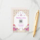 Indiskt arv Med det här fantastiska bröllop-kortet blandas kulturella motiv med ett modernt estetiskt motiv och skapar en design som är både traditionell och contemporary. Inbjudan innehåller en mjuk beige bakgrund med känsliga blommönster, som symboliserar elegans och harmoni. Fokuseringen är de pulserande, dekorativa elefanterna, som tillför ett inslag av kulturarv och festlighet i lila och orange. Den ornatbåge som ligger högst upp och de vita blommigtarna skapar en varm och inbjudande atmosfär. Skriptteckensnittet för namn ger elegans, medan det klassiska serif-teckensnittet ger enkel läsbarhet för detaljerna. Idealisk för ett kulturellt bröllop eller ett destinationsbröllop, fångar inbjudan kärlek och firande innersta väsen. F007