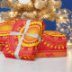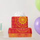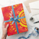 Utformning av dekorementet i snöre med elefant och runda former dekoration på röd bakgrund