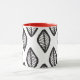 Coola teckning och kontrast. Tribal löv i svartvitt på röd mugg.