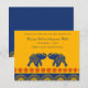 Dessa kort från bröllop spara datum erbjuder en modern uppsamling av traditionella ceremonier och mottagningar från Indiska bröllop med sin djärva palett från färg av gyllene gulter, röd och royal blå. Spara-data accentueras av ett geometriskt motiv och illustrationer av elefanter i royal blå.