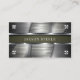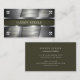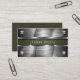 Ett robust men ändå raffinerat visitkort med borstad metallstruktur och en olivgrön accentlist för en professionell look. Den industriella designen, förstärkt med nitade detaljer, gör den ideal för bygg-, ingenjörs- och andra praktiska yrken. Anpassa denna mall för att representera ditt varumärke med styrka och stil.