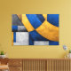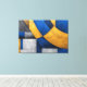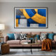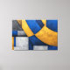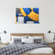 Modern abstrakt komposition som kombinerar böjda och fyrkantiga geometriska former. Sliten betongstruktur i djupblå, senapsgul och grå toner. Perfekt för industriell eller modern inredning. Konst som förenar geometrisk precision med urban rusticitet och elegans.