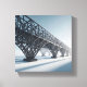Ett kraftfullt arkitektoniskt digitalt konstverk som visar en invecklad svart stålgitterstruktur. Designen har ett komplext nätverk av korsande takstolar som stöds av solida baser, mot en vidsträckt minimalistisk vit horisont. Denna del fångar skönheten i industriell teknik och geometrisk upprepning, vilket gör den till ett perfekt påstående för moderna kontor, urbana loft eller arkitektbyråer.