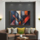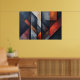 Abstrakt geometrisk konst med överlappande vertikala paneler. Nyanser av skifferblått, rostrött och betonggrått skapar en sofistikerad industriell look. Sliten textur tillför djup. Perfekt för modern inredning. Ge visuell påverkan och rå elegans till ditt utrymme med detta exklusiva konstverk.