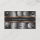 Detta slående visitkort har en industriell nitad metalldesign med djärva kopparaccenter, vilket skapar en robust och modern professionell look. Perfekt för byggnadsarbetare, hantverkare, ingenjörer eller yrkesverksamma inom tunga industrier. Dess slitstarka, manliga stil säkerställer ett starkt första intryck som speglar tillförlitlighet och styrka.