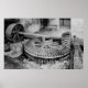 URSPRUNGLIGA TRÄGG OCH BEVEL-REDSKAP SOM ANVÄNDS FÖR ATT KÖRA BÄLTE FÖR RAG WASHER - Papper Mill, Whiting, Portage County, Wisconsin. Vintagens svarta och vita industrifoto.