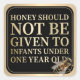 Varning för spädbarnshonung i guld och svart med ett realistiskt bin i hörnet.