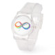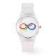 Ljussymbolen för oändlighet från lagrar av rött, gult, grönt, turkos, blått och lila mättat färg på vit bakgrund.