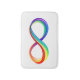 Ljussymbolen för oändlighet från lagrar av rött, gult, grönt, turkos, blått och lila mättat färg på vit bakgrund.