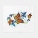 Symbol infinity made of gold, decorated with realistic orange and blue on a white background. Butterfly morpho and Monarch. Design with butterflies.