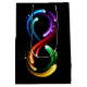 Symbol of infinity is artistically painted with fast moving, bright, luminous, rainbow colored comets with long flexible tails on black background. Rainbow infinity.