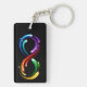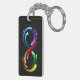 Symbol of infinity is artistically painted with fast moving, bright, luminous, rainbow colored comets with long flexible tails on black background. Rainbow infinity.