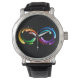 Symbol of infinity is artistically painted with fast moving, bright, luminous, rainbow colored comets with long flexible tails on black background. Rainbow infinity.