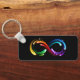 Symbol of infinity is artistically painted with fast moving, bright, luminous, rainbow colored comets with long flexible tails on black background. Rainbow infinity.