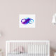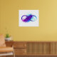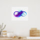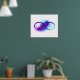 Infinity symbol with a beautiful feather painted in purple and blue bright colors on white background.