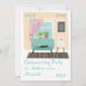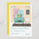 En modern stilfull design som är passande för ett inflyttnings- party av ett artyvardagsrum med en bekväm soffa med en katt. Denna design är nyckfull och kan fullständigt skräddarsy för att inkludera ditt egna personligt specificerar.