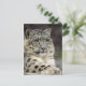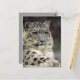 Nära skott av en Snö Leopard med artinformation på baksidan.