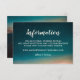 Informationsmallkort för elegant bröllop, där du kan inkludera webbplatsen för bröllop eller annan information. Bakgrunden är ett vackert foto av en mörk turkos blå nattblått himlar med en galaxi av stjärnor på framsidan och en soluppgång över berg på baksidan. Hela texten är fullt anpassade, i en snyggt med en kombination av skript och sans serif typsnitt.