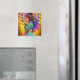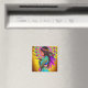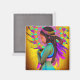 Vacker abstrakt konst med en vacker liten infödd amerikansk flicka med fjädrar i håret och en färgrik bakgrund i gult, lila, grönt, turkos och blått.