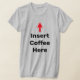 Roligt-skjorta med "Infoga kaffe här" med en ljusröd pil i vitt.