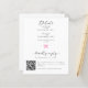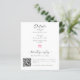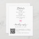Elegant, minimal och enkel inbjudan till dubbla på budgetbröllopssidan "Lyckligtvis alltid efter". På baksidan finns mottagningsdetaljer och OSA med en QR-kod.