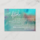 Erbjuda dina gästkort för att hjälpa dem att komma ihåg dina uppgifter om bröllop och stanna kvar i slingan när planerna utvecklas med detta särskiljande, konstnärliga kort. En slående textöverlagring som läser "detaljer" var designad med ett modernt skriptteckensnitt för elegant. Använda mallen fält om du vill anpassa dessa visitkort med dina personuppgifter. Texten med utrymmeshållare lades till både fram och bak, och du kan välja att använda varje fält eller ta bort texten på baksidan av kortet om du inte behöver så mycket utrymme. Båda sidorna täcktes av en abstrakt vattenfärg tvättat i färgnyanser som var så varierande att de inte bara omfattar kräm och turkos och grönt utan även blått, lila och en nyans av ljust rött. Tveka inte att nå ut om du har speciella förfrågningar. Andra delar som innehåller dessa inslag är tillgängliga i samlingen. Tveka inte att fråga om du har några förfrågningar om samordning av delara som ännu inte tagits med. 32 //