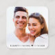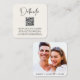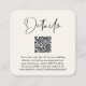 Modern light kräm bröllop-detaljerat kort för fyrkantiga höljen med "Information" i ett chic-skript. Ange din bröllop webbplats adress för att skapa en QR-kod som dina gäster kan söka igenom för all information, t.ex. anvisningar och platser och för OSANS online. Baksidan innehåller ditt foto överlagrad med namn och bröllop-datum gått med tillsammans av ett hjärta.