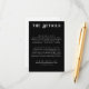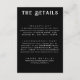 Kort för svart bröllop-information med tryckt, grym, vit text. Anpassa den med din händelseinformation.