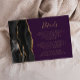 Den lämnat kant i denna elegant har ett kort för modern detaljrikedom i bröllop ett svart vattenfärgat agat gräns som trimmas med faux guld glitter. Texten finns i handskriftsskript i guld-färgad och typsnitt på djup lila. Den omvända sidan har en matchande svartvit och guld agate-design.