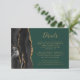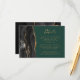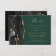 Den lämnat kant i denna elegant har ett kort för modern detaljrikedom i bröllop ett svart vattenfärgat agat gräns som trimmas med faux guld glitter. Texten finns i handskriftsskript i guld-färgad och typsnitt på en bakgrundsbild av grönten. Den omvända sidan har en matchande svartvit och guld agate-design.