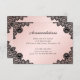 Elegant svarta och rosa bröllop-informationskort med svart blommigt snöre och ett elegant-skriptteckensnitt på rosa. Matchande objekt är tillgängliga.