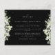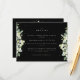 Ett svart, platt bröllop-djurutrymmeskort med elegant som innehåller en skugga av handmålade snöbär och eukalyptus på framsidan och en krans på baksidan av kortet. All text är helt redigerbar och de spridda punkterna längst fram och bakåt kan tas bort före beställning om du vill. Det här kortet finns med alternativa botaniska utformningar, i porträtt-format och i olika färger. Visa Samlingen i min butik om du vill se alla alternativ och samordningsposter.