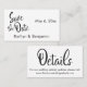 Behålla dina gäster i bröllop i slingan med all information du har med söt bröllopsfavoritkort. Elegantens textövertäckningar var designade med ett modernt, avslappnad skriptteckensnitt. I det här teckensnittet står "Spara datumet" på ena sidan och "Information" på den andra. Använda mallen fält som du vill anpassa med dina personuppgifter. Bakgrunden är täckt med vitt och det redigerbara färg kan ändras till vad som helst från den bröllop-palett du väljer. All text visas i svart. designad av Melody Watson för Pappra Muserie.