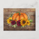 Är du redo att lägga till en aning självcharm till dina bröllopsinbjudningar? Se bara vårt detaljkort för Rustic Pumpkin-höstblommor! Med en vacker lada-bakgrund, bedövande solblommor, pumppumpor och elegant burgundy ro är detta kort perfekten till att dina bröllop-detaljer med dina gäster. Så vänta inte - ta till dig de mysiga romantiska viberna från fall och beställ vårt Rustic Pumpkin Autumn Flowers-informationskort i dag!