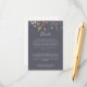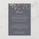 Det här klassiska minneskortet för blommigt bröllop i blå vild är perfekt för ett bröllop i rustik. Utformningen har en gult, lila, vita blommor med vild i ro och grönt med vattenfärg.