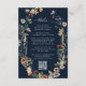 Kortet Navy Blue Boho Blommigt Details-hölje. Ange perfekten för bröllop med det här Navy Blue Boho Wildblommes presentationskort, med delikata, handmålade vilda blommor i terracotta, rost, lila och blått, lämpligt placerade i en vintage-inspirerad krans. Den djupa blå bakgrunden i marinen ökar värmen hos de rustiska torkade gräs och mjuka blad och skapar en romantisk och tidlös design. Anpassa det här kortet enkelt - anpassa ordalydelsen, justera teckensnittets stilar och storlek eller ändra till och med bakgrunden så att den stämmer överens med din vision. Den bekväma QR-koden gör det enkelt för dina gäster att få tillgång till ytterligare information om bröllop, så att de enkelt kan hålla sig informerade. Ett vackert designat sätt att behålla firande organiserat och oförglömligt - börja anpassa din i dag!