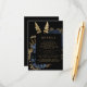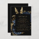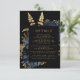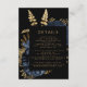 Den här eleganten har ett kort för moody detaljer om djurutrymme i bröllop en lush, romantisk blommigt bouquet i marinblått med guld faux foil och glitter foliage på svart bakgrund. Anpassa guld-färgad-texten i typsnitt snyggt på en svart rektangel. Kortets baksida är starkt svart.