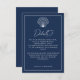 Inkludera det här badplatskortet för marin snäcka med blå schallop i din bröllopsinbjudan för att förse dina gäster med viktig information som logi, transport och mottagningsinformation. Se samlingen för resten av matchande bröllopsinbjudningssvit och mer matchande produkter.