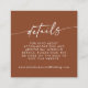 Kortet för QR-koddetaljer för boho chic terracotta bröllop är perfekt för ett minimalistiskt bröllop. Den tidigare brända orangen med modern bohemisk design har en enkel, rustisk kalligrafi med ett unikt men klassiskt stil. Ange webben adress i QR-kodavsnittet i mallen och QR-koden uppdateras automatiskt och länkar till platsen.