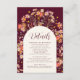 Den här boho faller med rustik Wildblomsburgundy Bröllop-detaljkortet med mallar som är lätta att använda för i elegantens moderna typografiskript. En snyggt och ett användbart tillägg till din invigningssvit för burgiga elfenbenstorn, designat för att sömlöst komplettera din firande karm. Med handmålade vildblommor i varma, automatiska toner av bränd orange, terracotta, lila, gult, koral, bränt antal, persika och mjuk rosa ger detta kort en aning elegans och stollig. De vackra romantiska bohemiska blommigtarna under hösten skapar en förfinad men naturområdet inspirerad estetik, medan elegantens manustypografi tillför en modern kontrast. Designat med det ursprungliga tecknet av Catherine Sweetman fångar det centrala i firande, och inbjuder dina kära att gå med dig i ett varmt, oförglömligt firande i kärlek.