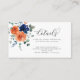Kortet för detaljer om hölje för Bröllop för förbränd Orange i Blommigt. Kort med detaljuppgifter om blommigt bröllop med handmålade vattenfärgblommor och grön i nyans av blå marin och bränd orange med modernt kalligrafi-skript. Fullständigt anpassade bröllop-informationskort. Fina originalfärger, riktiga handmålade blommor och löv. Lägg till uppgifter om bröllop, ändra typsnitt, placera blommorna och färg framför och bakom kortet.