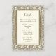 Det vackra Art nouveau-kortet "Detaljer" koordinerar med min bröllopsinbjudan till Art nouveau i Guld. Den ornerade guldfärgade gräns omger en elfenbensbakgrund som användor mörk brun text i två samordnande stilar. Teckensnittet stilar valdes noggrant för att förbättra utseendet på elegantens vintage. Använda det här kortet för att informera din gäst om all information de vill veta om din speciella dag. Hotell, skyttelscheman, en frukost i bröllop - spelar ingen roll fodral kan du lägga den här. Det finns också en bakgrund för guld som kan koordineras med matchningsinbjudan.