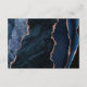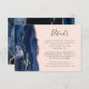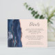 Den lämnat kant i denna elegant har ett kort för modern detaljrikedom i bröllop ett marint blått vattenfärgat agat gräns som trimmas med faux ro guld glitter. Rubriken visas i handskriftsskript, med anpassade nedan i färgkodsteckensnitt för grått på bakgrund. Den omvända sidan har en matchande marin blå utformning och ro guld-agatdesign.