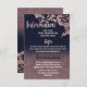 Elegant, chic och enkel, modern faux-tryckt ro guld glitter, blommor och typografi på modern marin blå bakgrund, informationskort för Bröllop. Denna klassiska och sofistikerade utformning är perfekt för klassen, snyggten och trendiget student. Anpassa med ditt eget meddelande på framsidan och ett anpassat inledande monogram på baksidan. All fotoutskriftsdesign.