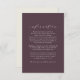 Med sin rik och säsong sjunker plommon- och elegant-typografi koordinerar detta informationskort för bröllop perfekt med insamlingen av Lea Delaveris Design höst löv hösten bröllop. Med sin enkla utformning kan den också användas för att matcha andra samlingar i bröllop och färg kan ändras genom att klicka på "anpassa ytterligare".
