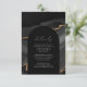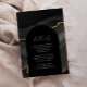 Den här designen har en svart båge på en bakgrund med svart vattenfärg som trimmas med guld-faux-folie. "Detaljer" i ord visas i det elegant vita kalligrafiskriptet. Lägg till bröllop-informationen i vit kursiv stil.