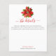 Poinsettia Julskript Bröllop. Ett budgetmässigt prist pappert alternativ som du kan bifoga dina inbjudningar till. Den här festdesignen har ett rött poinsettia överst och i eleganten för sidhuvudet. Anpassa texten enkelt. Du kan också ändra stilar och färg samt färg i bakgrunden genom att anpassa ytterligare alternativ om du vill.