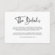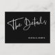 De här svarta och vita, moderna bröllop-informationskorten för gäster innehåller ett trendig och elegant stil, med handskript och klassisk avslappnad. Du kan använda dessa kort för köranvisningar, mottagnings- eller transport-information, hotell- eller inkvarteringsinformation och alla andra bröllop-uppgifter som du behöver dina gäster för att veta. Kortets baksida är svart med mer passande vit kalligrafi.