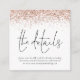 Uppgifter om QR-koden för Bröllop i Ro Guld Glitter. En liten liten storlek att komma in med dina inbjudningar så att gästerna kan söka igenom en QR-kod för att se all information de behöver, t.ex. anvisningar och bostadsinformation på bröllop webbplats. Byt ut provexemplet QR-kod på baksidan mot ditt eget till webbplatsen bröllop Du kan skapa QR-koder för gratis online. Sök bara efter "QR-kodskapare" och många alternativ som komar upp till skapa gratis. Den här designen har ett modernt angivet skript för huvudhuvudet och resten av texten som du enkelt kan anpassa. En gräns av Flex glitter i ro guld ligger högst upp på båda sidor.